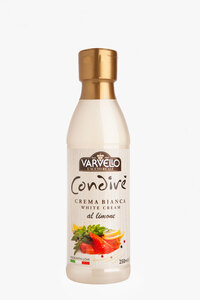 ホワイトワインビネガー、濃縮ブドウマストを主体として作られたホワイトバルサミクリーム。天然のレモンフレーバー使用。半透明で料理での色合いもサポート。お好みでデザートから料理まで活用できます。